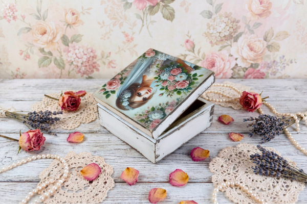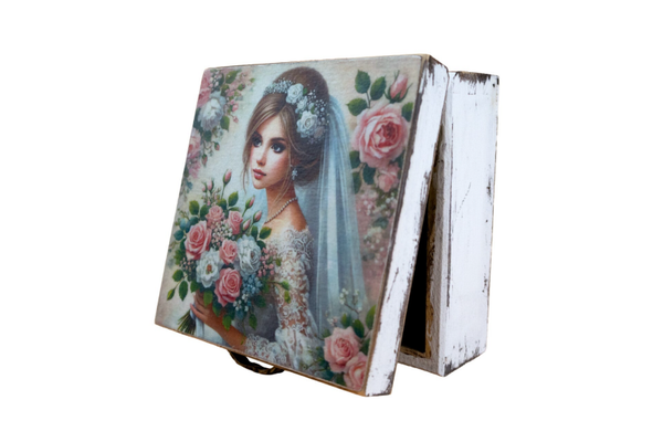 szkatulka Narzeczona, drewniana, decoupage