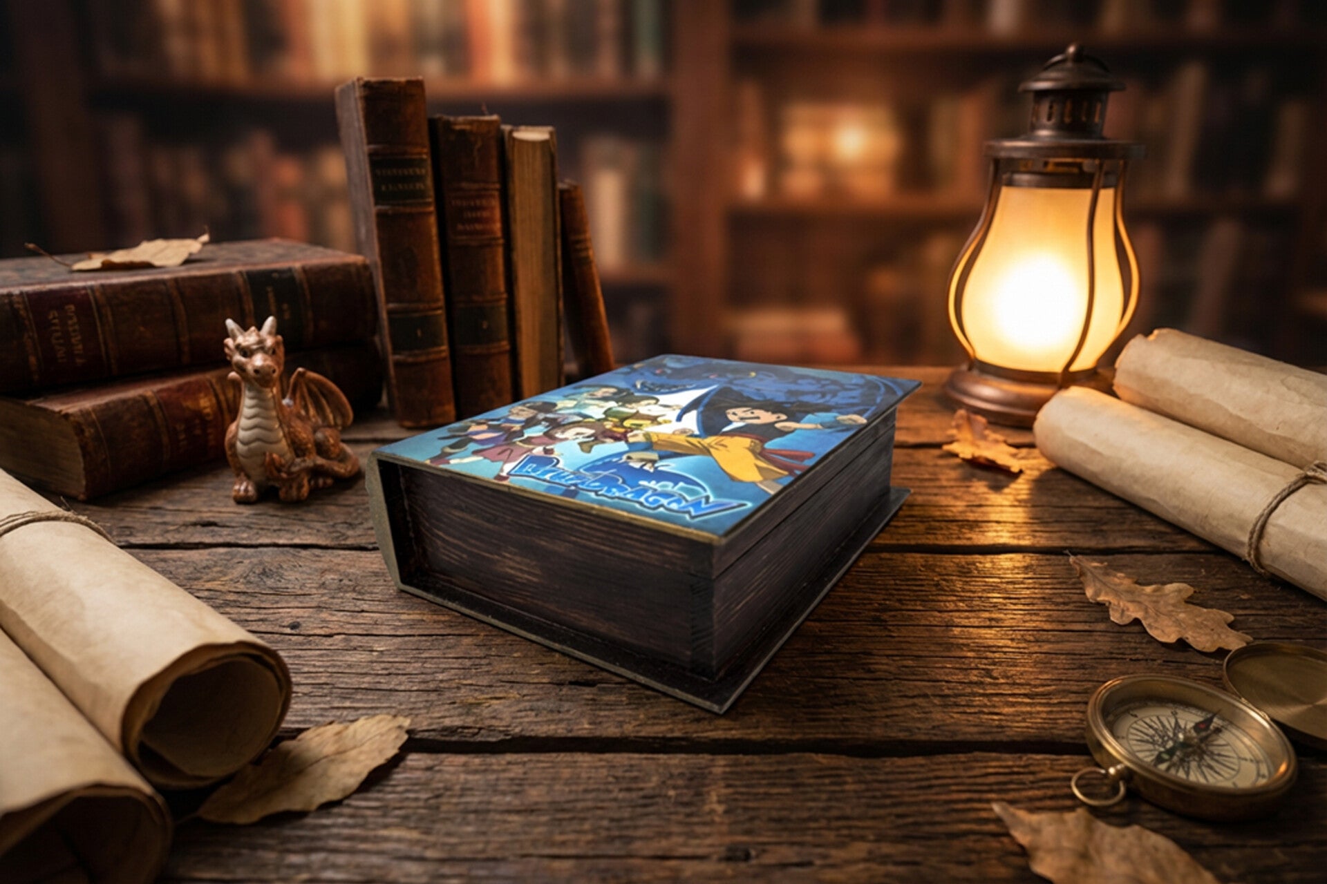 pudelko drewniane, dekorowane obrazkem anime Blue dragon