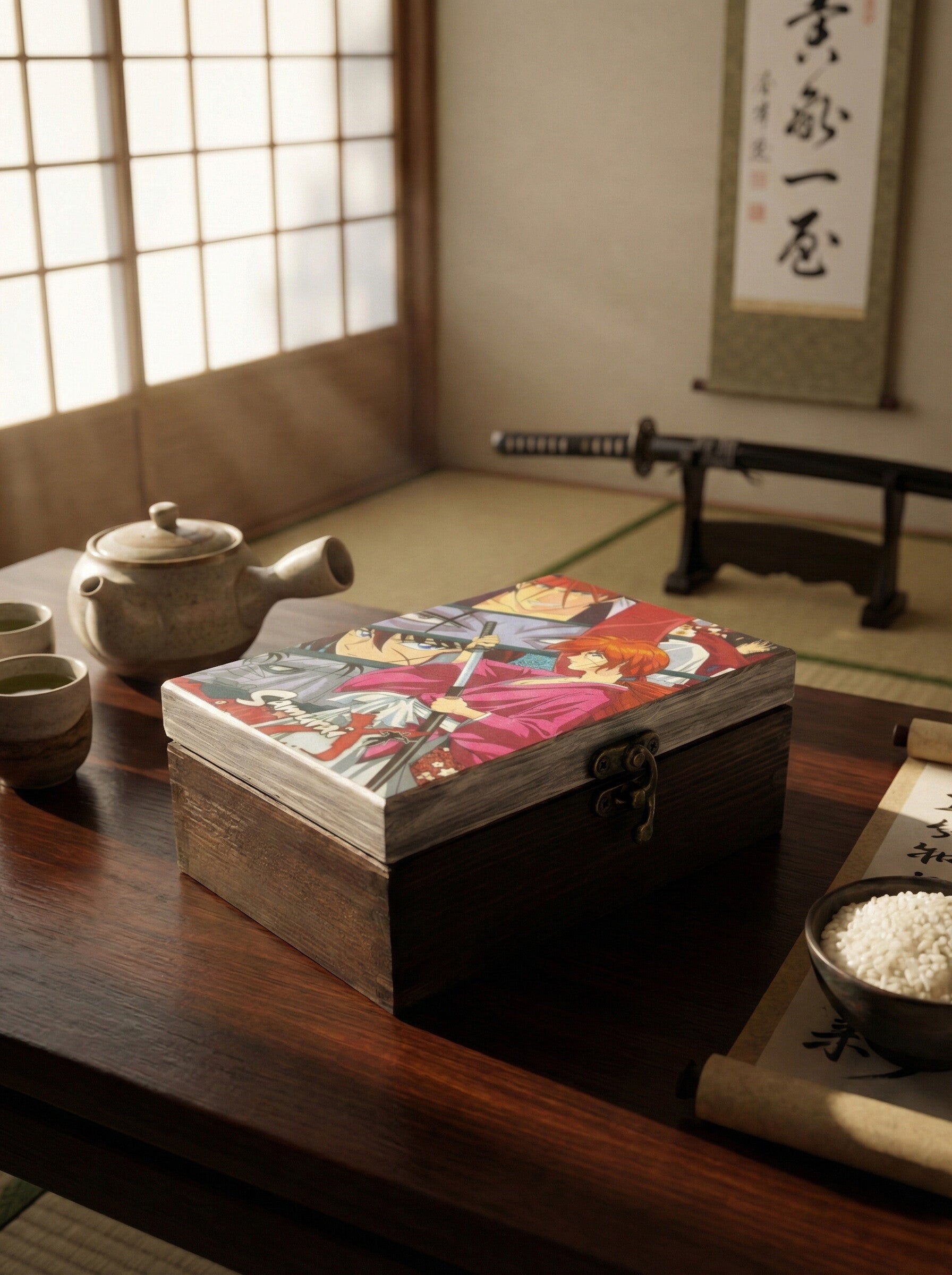 szkatulka drewniana, dekorowana w stylu japonskim