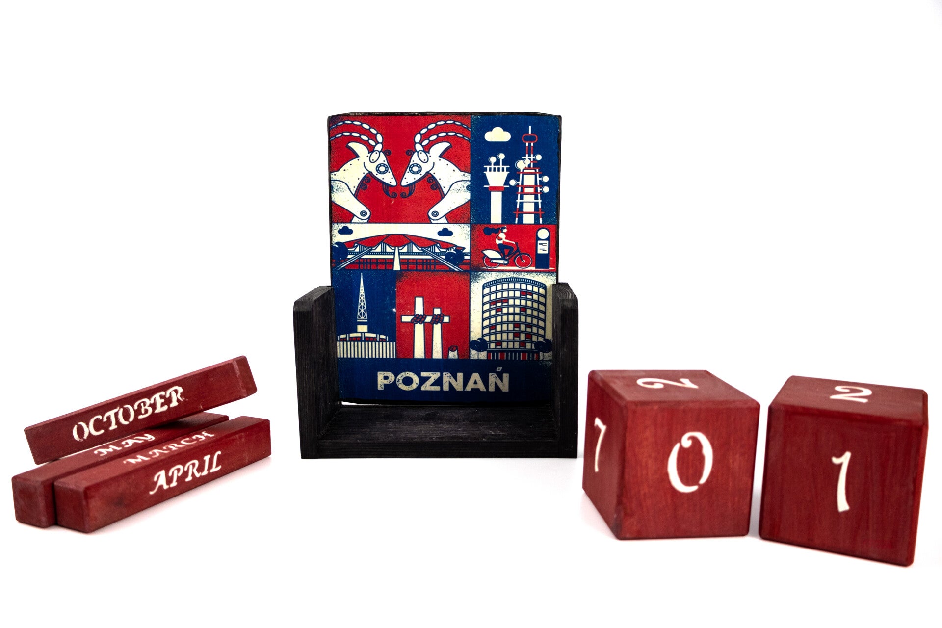 kalendarz wieczny Poznan, drewniany, dekorowany